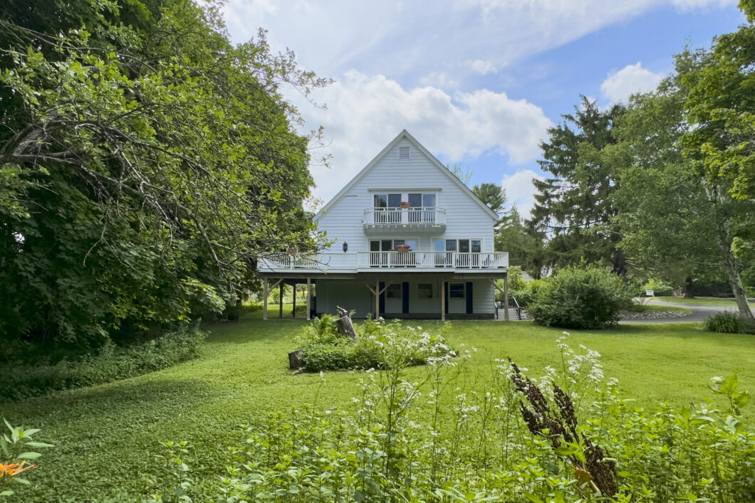 Perched on the river side of Washington Street, just under the rise of Mt. Battie and the Camden Hills, this incredibly spacious home being just under 3000 square feet, is just a moment from Camden Village and 5 houses down from freshwater swimming Shirt Tail Park. Inside, a generous open floor plan features a charming kitchen, living/dining room with abundant natural light and windows, opening to a huge deck overlooking the back lawn towards the Megunticook River offering a peek at the water and solid mountain views. A large primary bedroom with en-suite and balcony, 3 additional bedrooms, two additional baths, and a first floor gym/office or bedroom can accommodate a variety of living options. The kitchen, at the heart of the home, has vintage charm and details. This property has a strong rental history or is perfect for owner enjoyment. Many improvements including updated baths, paved drive, hardscape, new flooring in the primary and living room, new garage doors, Anderson windows/ dual double sliders, and heat pump system.